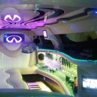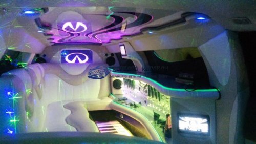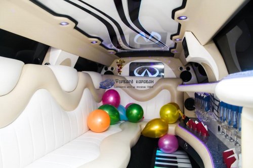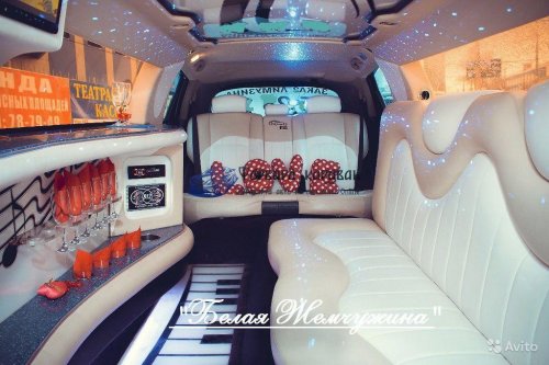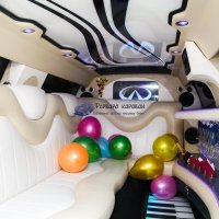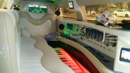 Внутри салона лимузина для Вашего запоминающегося отдыха приготовлено:шикарная мягкая кожаная мебель; многоцветная подсветка; диско-пол и диско-потолок; впечатляющие мониторы с караоке; музыкальная система CD,DVD,MP3,USB; зеркальный бар с подсветкой и приятным наполнением; и многое другое. Салон авто способен с комфортом вместить до 10 человек, что позволит Вам приятно пообщаться небольшой компанией: к примеру, в такую поездку жених с невестой могут взять только родителей, свидетелей и других са...